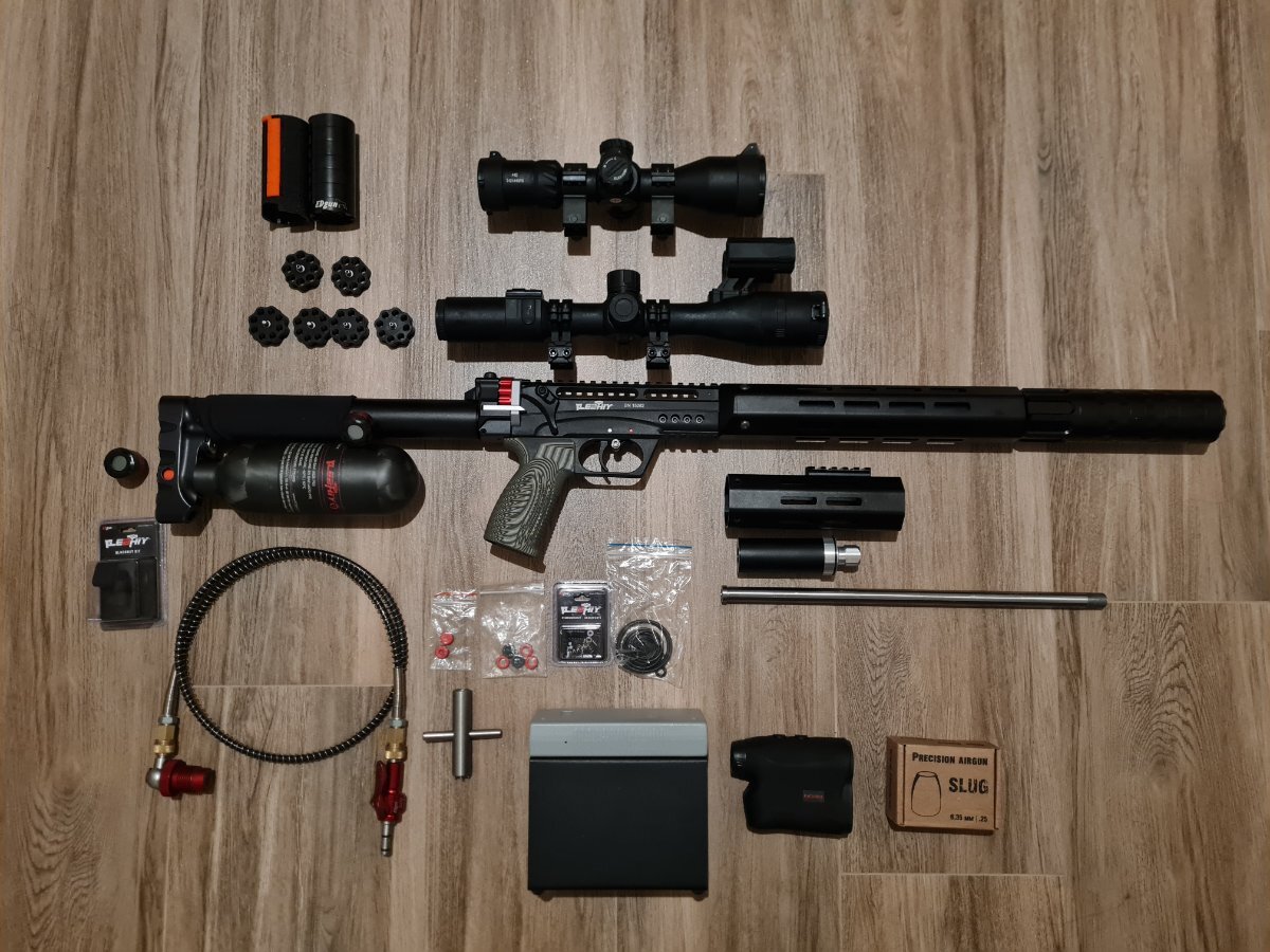 Добрый день коллеги. В связи со срочной покупкой второго огнепыха, продаю очень жирный комплект Леший 2 с двумя стволами, 7,62/450 и 6,35/350 и двумя цевьями под бегемоты в исполнении 3 Дж. Винт в идеальном состоянии, бумагу не люблю. Использовал ее только для пристрелки, по этой причине настрел чуть больше банки на каждом стволе. В качестве БК использовались слаги XF в калибрах 6,35 и 7,62, а так же слаги Edgun в калибре 6,35. На субъективный взгляд с моих стволов летят около одинаково хорошо. А вот баракуды не полетели совсем. JSB не пробовал, т.к. слаги мне ближе. Что-то докупалось по надобности, что-то на попробовать из-за этого комплект достаточно обширный. Покупка возможна как полным комплектом, так и урезанным. Полный комплект: 1. Винтовка Леший 2, в составе: - Ствол 7,62/450, цевье под бегемот 450 мм, резонатор для ствола 450 мм, бегемот с тюнингом (выкинуты ленты, установлены алюминиевые конусы. Стало чуть тише и волосня не торчит.), алюминиевый слаговый магазин - Ствол 6,35/350, резонатор 350 мм, цевье под бегемот 350 мм, дюзы для калибра 6,35 - Колба Edgun 0,36 л. - Два манометра Meazy, один на месте штатного показывает давление в колбе, второй в заредукторном объеме, показывает установочное давление редуктора. - Родной маленький резервуар и родной модератор прилагаются. 2. Быстрозарядник пластиковый 6,35 3. Быстрозарядник Edgun алюминиевый 7,62 4. Два магазина стандартных 6,35 5. Два магазина слаговых 6,35 6. Два магазина слаговых 7,62 7. Прицел DISCOVERY HD 3-12X44SFIR 8. Цифровой прицел день/ночь Pard DS 35-70RF (в него я прям влюблен, не уйдет с комплектом, оставлю на огнепых) 9. Зарядная станция Edgun EaZy в сборе 10. Хронограф 11. Дальномер 12. Коробка слагов Edgun 6,35 (есть еще где-то по пол банки 6,35 и 7,62 слагов XF, отдам в нагрузку) 13. Куча родного ЗИП Edgun в родных упаковках, перебрать можно будет все. Внимание! При покупке полного комплекта прицел DISCOVERY HD 3-12X44SFIR хронограф, дальномер и быстрозарядник 6,35 покупатель получает бесплатно! Стоимость указанного комплекта — 278 000 руб. С учетом нынешних цен на продукцию Edgun, более чем гуманно. Возможна продажа в только винтовки в комплектации № 2: Винтовка Леший 2, в составе: - Ствол 7,62/450, цевье под бегемот 450 мм, резонатор для ствола 450 мм, бегемот с тюнингом (выкинуты ленты, установлены алюминиевые конусы. Стало чуть тише и волосня не торчит.), алюминиевый слаговый магазин - Ствол 6,35/350, резонатор 350 мм, цевье под бегемот 350 мм, дюзы для калибра 6,35 - Колба Edgun 0,36 л. - Два манометра Meazy, один на месте штатного показывает давление в колбе, второй в заредукторном объеме, показывает установочное давление редуктора. - Родной маленький резервуар и родной модератор прилагаются. Стоимость 178 000 руб. Так же возможна продажа только винтовки в комплектации №3: Винтовка Леший 2, в составе: - Ствол 7,62/450, цевье под бегемот 450 мм, резонатор для ствола 450 мм, бегемот с тюнингом (выкинуты ленты, установлены алюминиевые конусы. Стало чуть тише и волосня не торчит.), алюминиевый слаговый магазин - Ствол 6,35/350, резонатор 350 мм, цевье под бегемот 350 мм, дюзы для калибра 6,35 - Колба Edgun 0,36 л. - Родной маленький резервуар и родной модератор прилагаются. Стоимость 165 000 руб. Так же в наличии есть два баллона Аrmotech 6.8 л, сроком до 2039 года. Цена с чехлом на молнии 25 000, без чехла 22 000. Родной, практически новый Аrmotech, сейчас найти в России проблематично…. Комплект находиться в г. Севастополе, приезжайте, смотрите, забирайте. При полной предоплате от