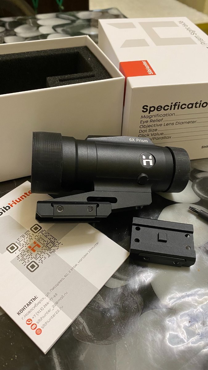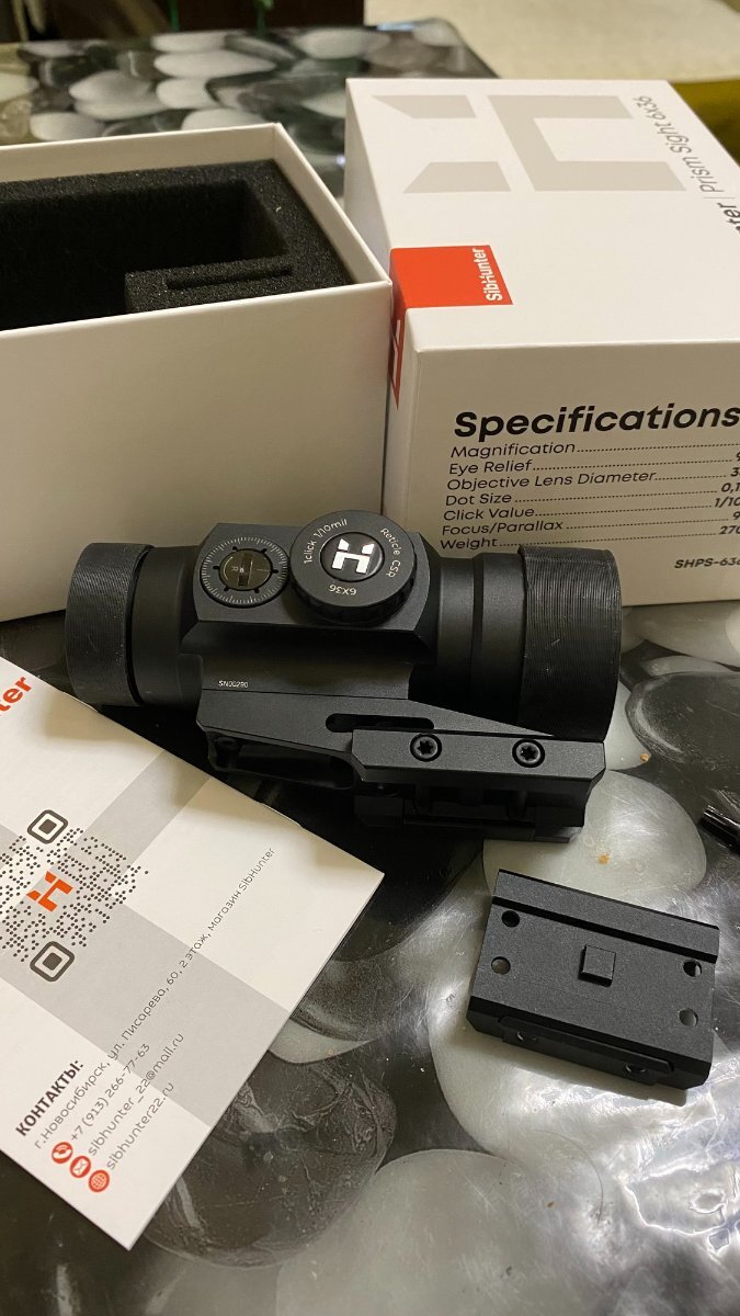 glykgarik Опубликовано в понедельник в 04:24 Опубликовано в понедельник в 04:24 Призматический прицел SibHunter Prism Sight 6x36 Компактный призматический прицел с увеличением 6 крат и объективом 36 мм. Оснащён комфортной сеткой CSR с подсветкой, обеспечивающей быстрое и точное прицеливание даже в сложных условиях. Удобный айрелиф 90 мм делает модель практичной в использовании. Чёткие клики с шагом 1/10 MIL позволяют точно вносить поправки. В комплекте две базы низкая и с выносом и защитные колпачка на линзы с двух сторон Цена 26000 руб Видеообзор: https://vk.com/video_ext.php?oid=-92269874&id=456239212&autoplay=1 Основные характеристики: Увеличение, Х: 6 Диаметр объектива, мм: 36 Материал линз: Стекло с многослойным покрытием Высота оптической оси, мм: 36 Удаление выходного зрачка, мм: 90 Дистанция наблюдения без параллакса, м: 91 Подсветка сетки: Красная (10 режимов) Автоотключение подсветки: 4 часа Поле зрения м/100, м: 6,4 Цена клика поправок: 1/10 MIL Запас вертикальных поправок: 34 MIL Запас горизонтальных поправок: 34 MIL Тип батарейки: 2032 Материал корпуса: Авиационный алюминий 6061 Размеры, мм: 104x47x48 Вес, г: 270 Водостойкость: IPX7 Ударная стойкость: До 308 калибра (включительно)